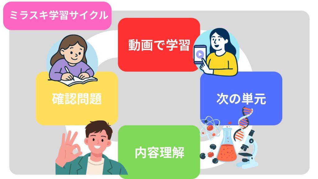 これは短い動画と確認問題を組み合わせた学習方法で、少しずつ理解を積み重ねていく仕組みです。