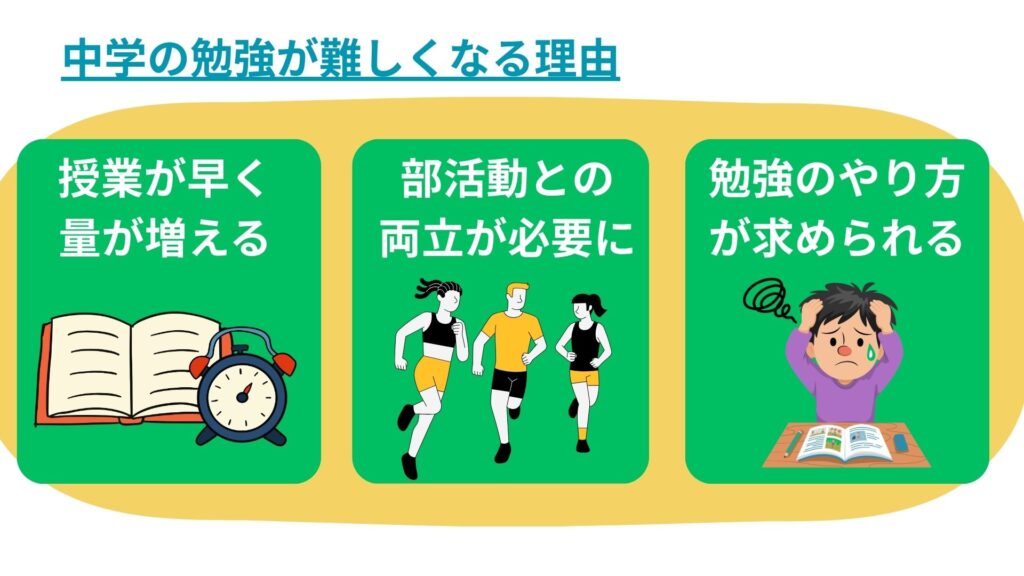 ここでは、中学生が勉強につまずきやすい主な3つの理由をご紹介します。