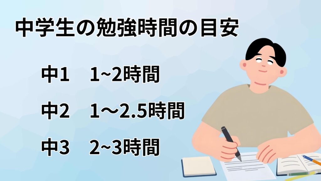 では、中学生は実際にどれくらいの勉強時間を目安にすればよいのでしょうか。
