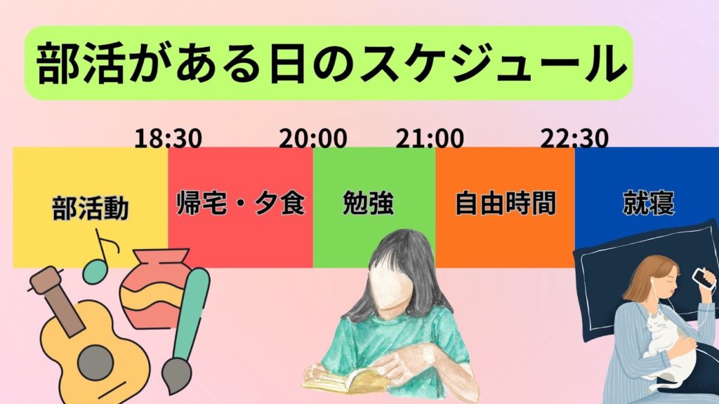 この時期は、帰宅後にだらだら過ごしてしまうと勉強時間が取りにくくなるため、勉強する時間をあらかじめ決めておくことが効果的です。