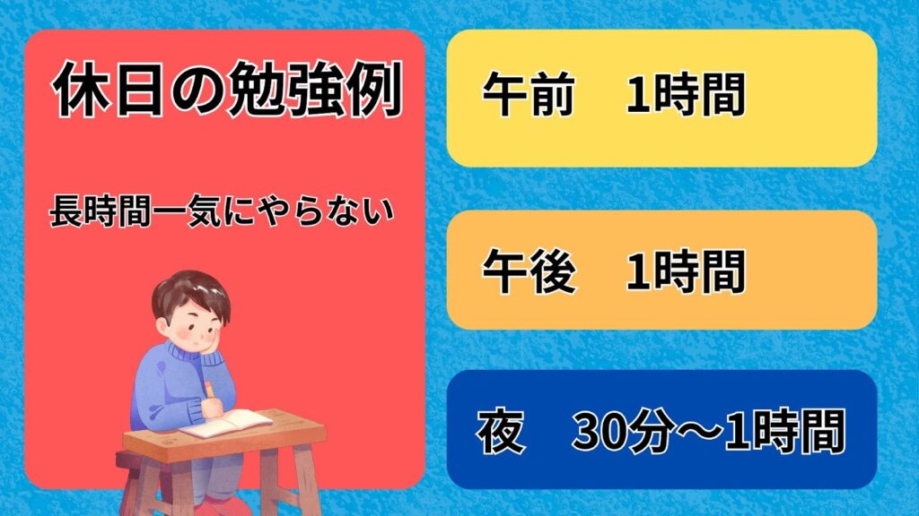 休日は学校の授業がないため、平日より少し多めに勉強する時間を確保するのがおすすめです。