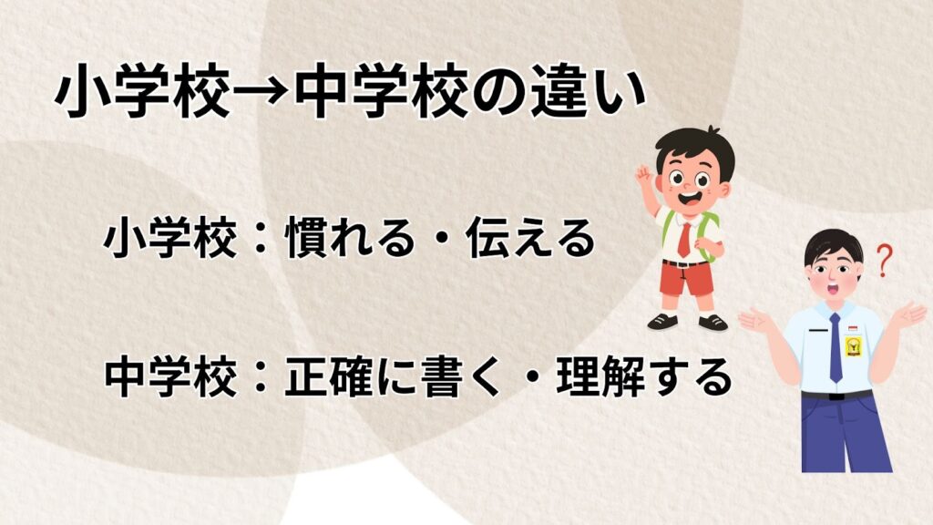 小学校の英語と中学校の英語の違いにあります。