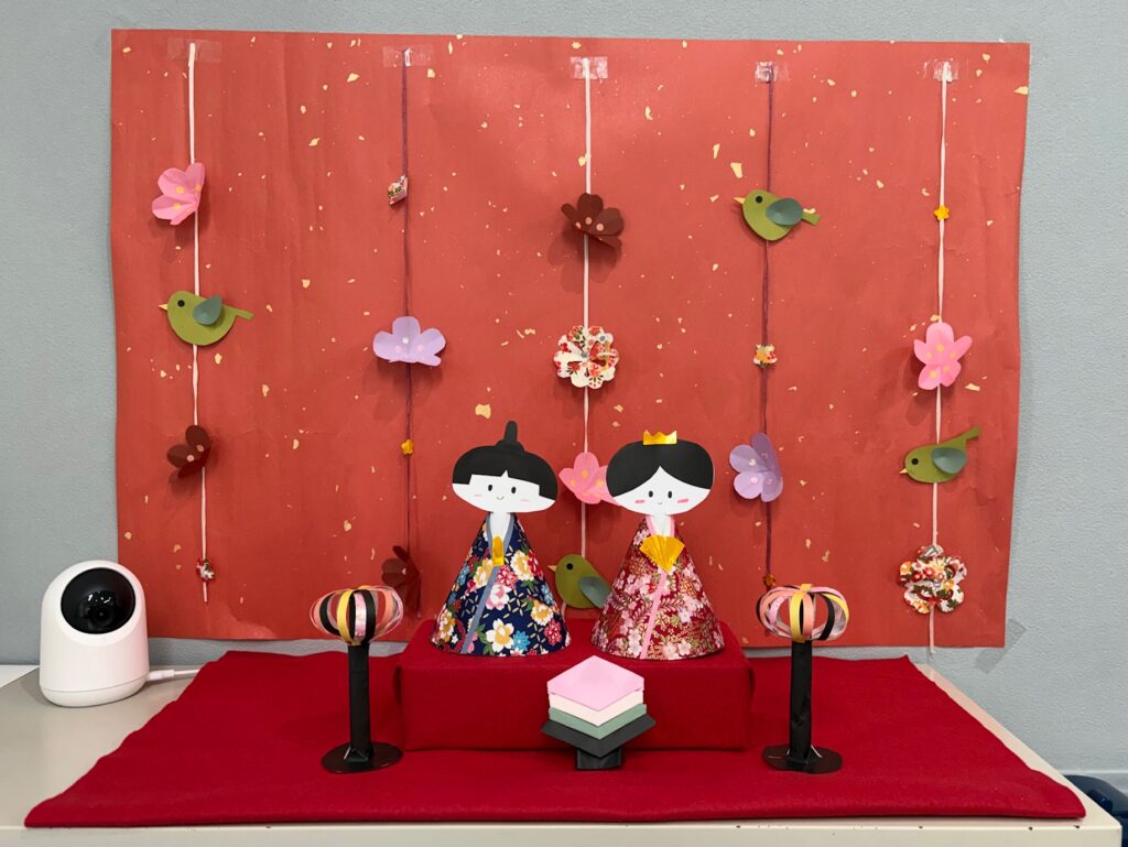 可愛らしいお雛様が加わり、いつもの教室がパッと華やかな雰囲気になっています。